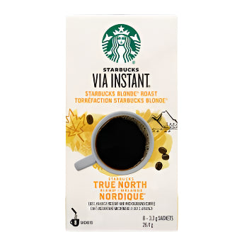Experience the rich and bold taste of STARBUCKS coffee with our Via Instant True North 26.4g (8 Sachets). Made with only high-quality arabica beans, this convenient and easy-to-use instant coffee allows you to enjoy the perfect cup of coffee anywhere, anytime. No brewing necessary, simply add hot water and enjoy a deliciously smooth and flavorful coffee experience. Perfect for those on-the-go or for those who crave the taste of STARBUCKS at home.
